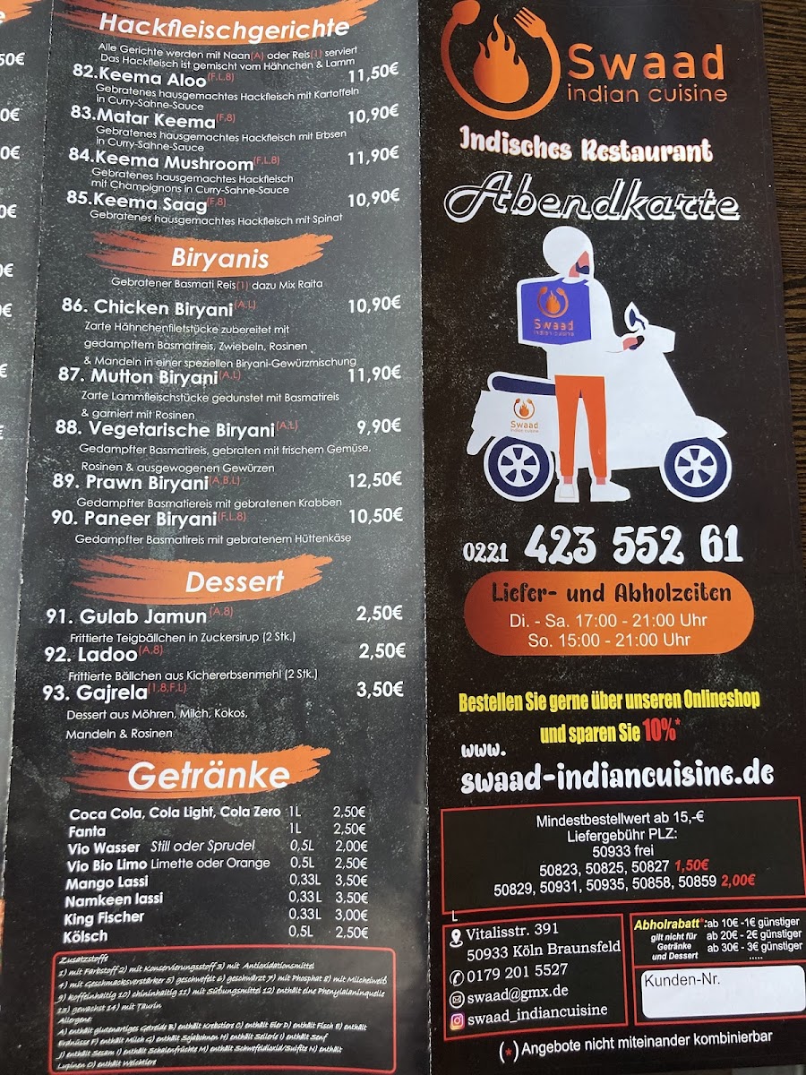 Welcome to Swaad Indian Cuisine Köln, a hidden gem nestled in the heart of Köln at Vitalisstraße 391. With a commitment to bringing authentic Indian flavors to Germany, Swaad has quickly earned rave reviews from discerning food lovers. Known for its exquisite dishes and a charming atmosphere, this restaurant is a must-visit for anyone craving the rich and diverse tastes of Indian cuisine.